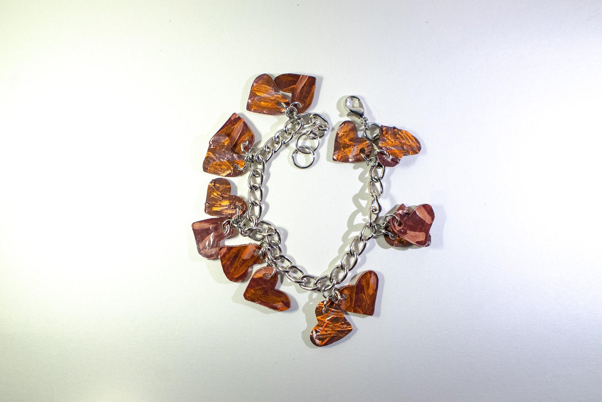 Rich Burnt Orange & Brown Heart Charm Bracelet